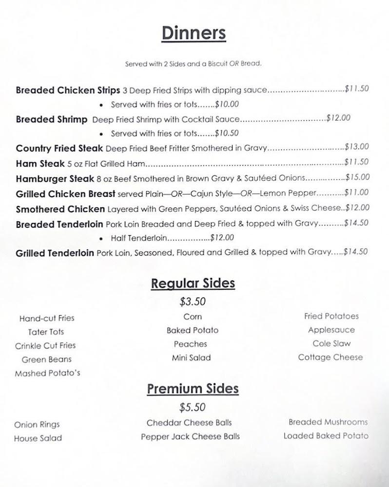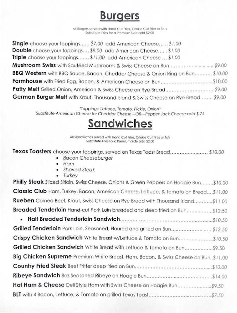The burger section is a highlight, with options ranging from Mushroom Swiss to BBQ Western. Sandwiches like the Reuben and Philly Steak capture the essence of comfort food. Sides, including hand-cut fries and loaded baked potatoes, perfectly complement any main dish. Specialties like the handmade ice cream enhance the overall diner experience.